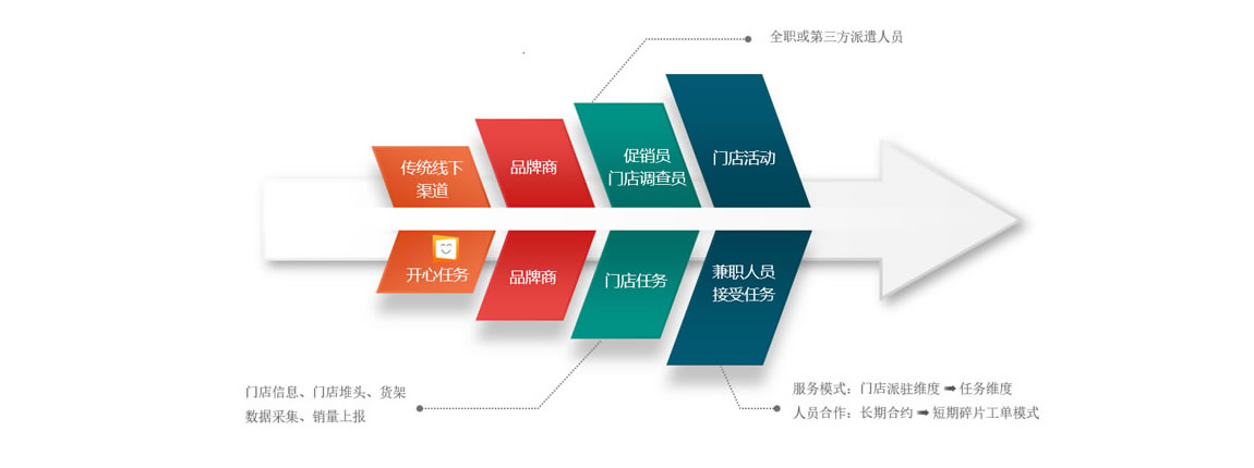 | 零售終端促銷員日常表現(xiàn)評估、銷量上報、貨架缺貨管理、促銷員出勤管理,后臺基本數(shù)據(jù)維護(hù)、生意分析決策 | |
